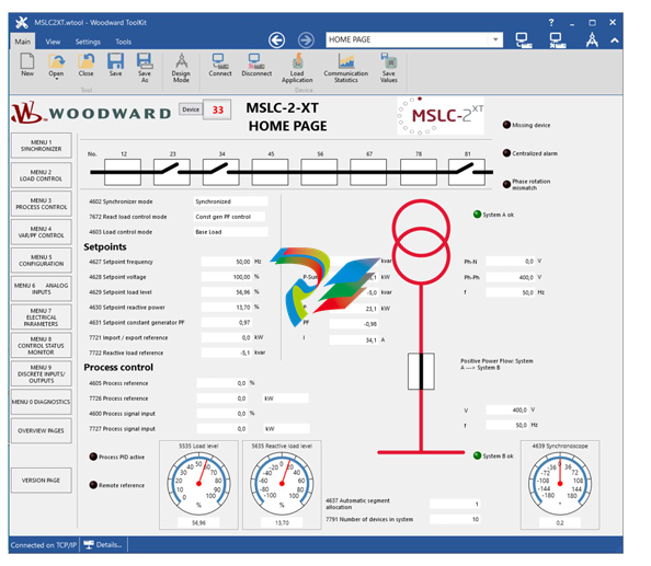 MSLC-2 plus an overview screen. Graphical overview of generators and bus bar parameters with trending