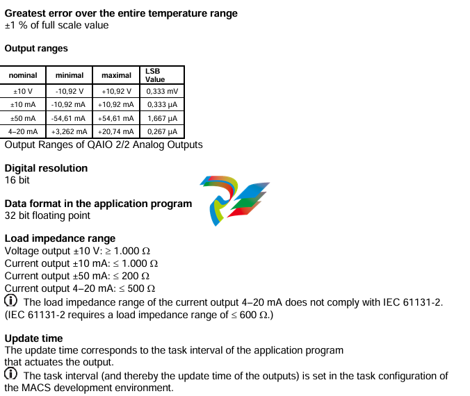 2 analog outputs 16 Bit; each ±10 V, additionally individually configurable in