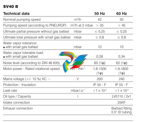 The Sogevac® pumps SV40 BI are single-stage oil-sealed rotary vane