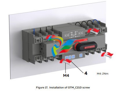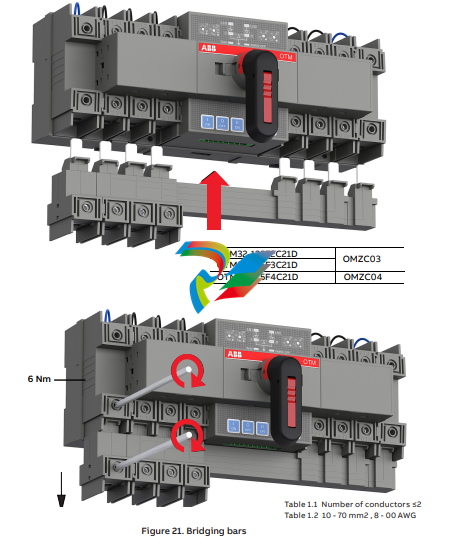 operated handle, locally using push buttons or fully automatically. The automatic mode includes several operating methods: Line 1 priority, no line priority and manual back switching mode. OTM_ C21D can achieve communication function by using the optional external Modbus RTU module.