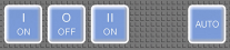 I, O, and II push buttons on the front panel of the switch. Press “AUTO” button