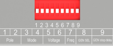 5, 6 Generator start: generator start signal output. When the backup power is a generator, it is used to start (close signal) and stop (open signal) the generator. After the switch transfers to the normal power, the generator stop signal is sent after the preset delay for generator stop (see the ninth bit in section 4.4 for the generator stop delay setting).