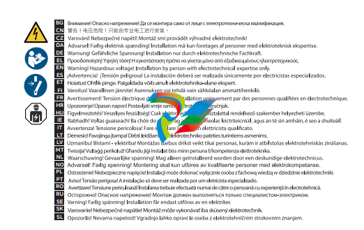 Risk of Electric shock: warns about a situation where a hazardous voltage may cause physical injury to a person or damage to equipment.