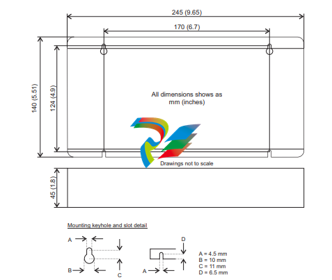 must be mounted on a smooth non-flammable vertical surface. Orientation must be as