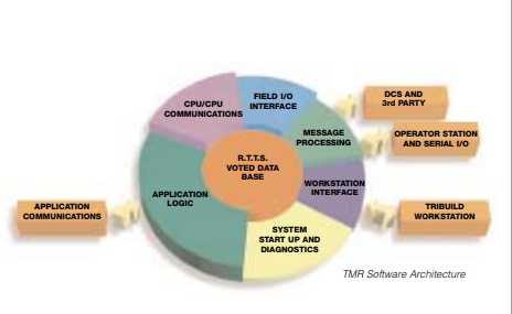 ut and output modules interface to three isolated I/O communication buses, each being controlled by one of the three processor modules. Field input signals are filtered and split, via isolating circuits on the inpu