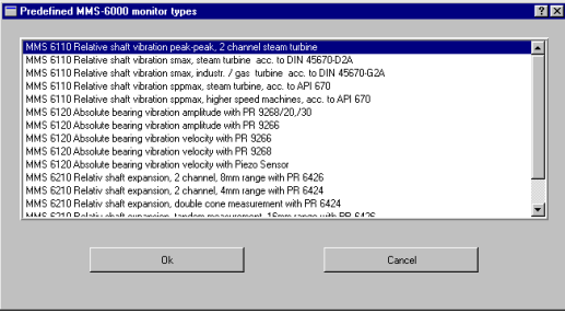 Menu point File > PreDefined opens dialog window PreDefined MMS 6000 Monitor Types.