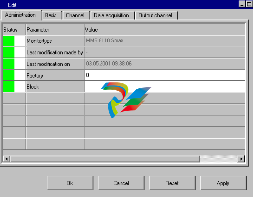 Menu point Edit opens a dialog window with several property pages for setting device parameters.