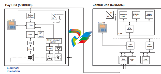between the protection and the primary system process comprising the main CTs, isolators and circuit-breaker and performs the
