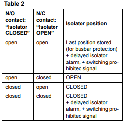 Auxiliary contacts on the isolators are connected to binary inputs on the bay units and