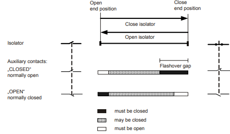 the N/O contact must not open before the isolator main contact gap exceeds its flashover