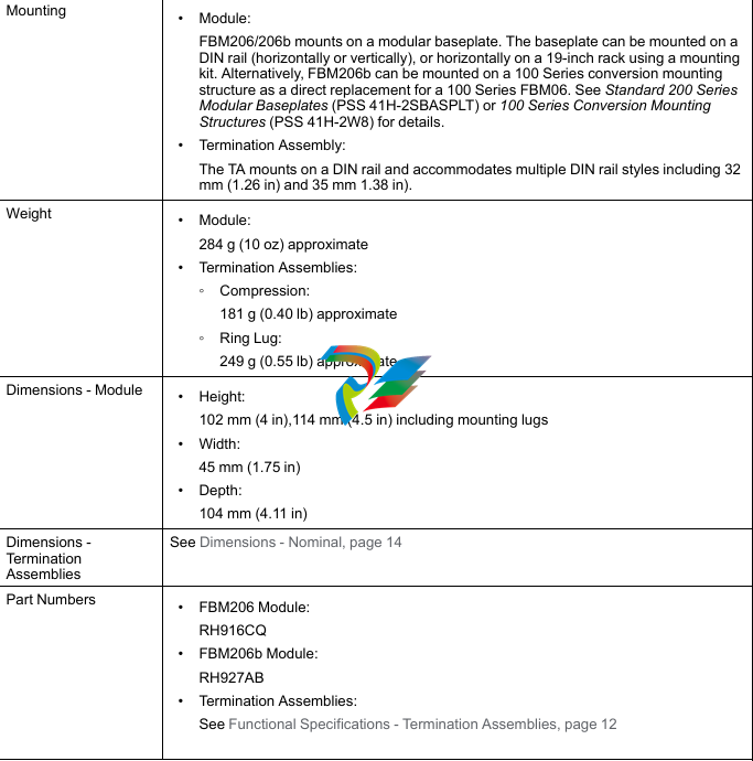 Alternatively, the FBM206b can accept this field wiring through a Termination