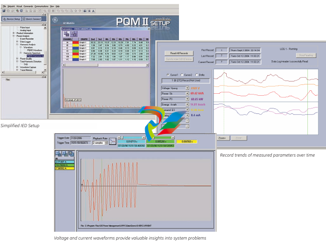 PQM II setup program contains many tools and reports that simplify device configuration and allows viewing of power system events.