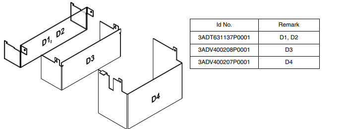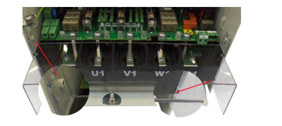 Mount the D1, D2 cover using the existing lateral pins and than swing it down to snap it into the terminal