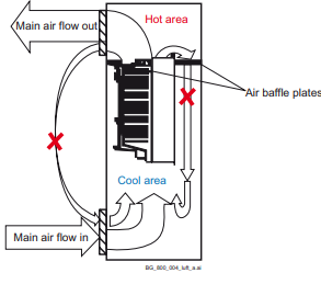 Prevent air recirculation inside and outside the cabinet.