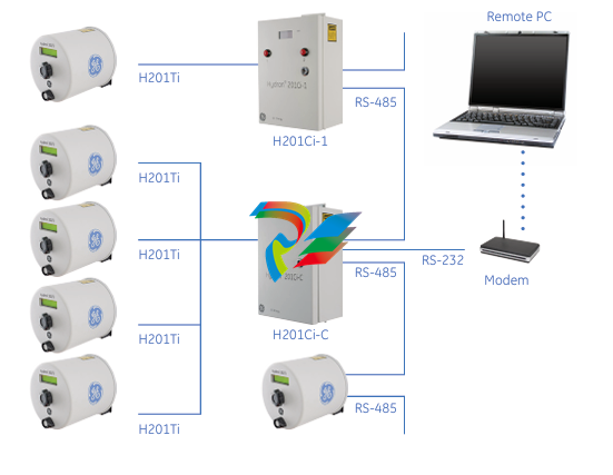 • The Ci-C controller receives the gas ppm data from up to four H201Ti, providing