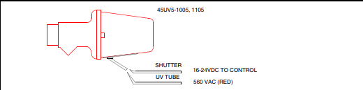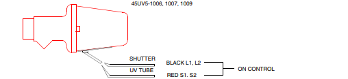 Two black leads which power the shutter via L1 & L2 and two red leads which drive the UV tube