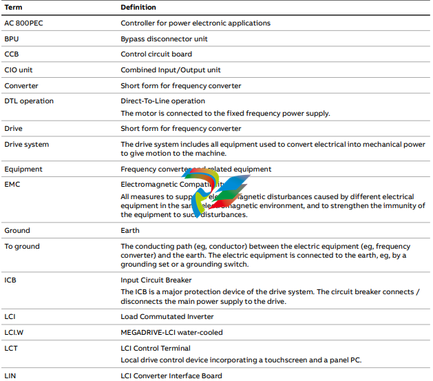 manual. Some of the terms and abbreviations used in this user manual are unique to ABB and might