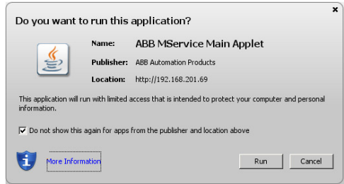 The main display of the MService WebHMI is implemented as Java applet. Starting with Java 7, Oracle