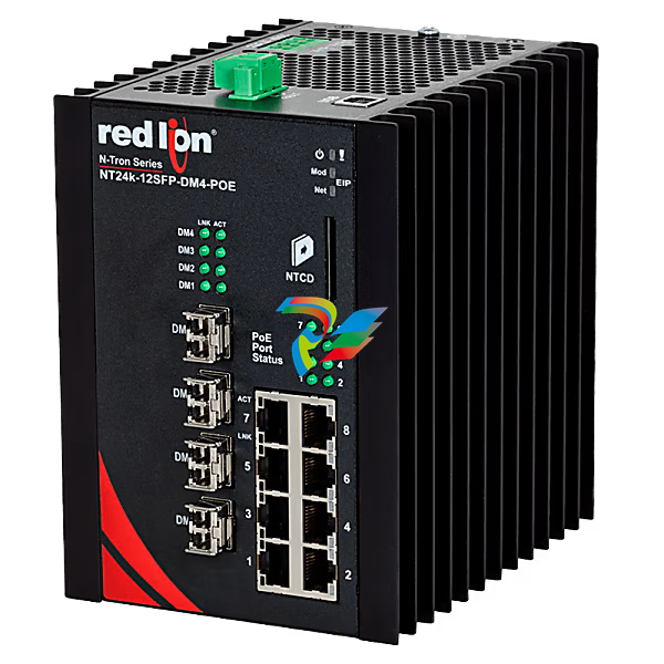 The N-Tron® NT24k 12-Port Managed Gigabit Industrial Ethernet Switch is one of the easiest to deploy Ethernet switches in the industry. Simplified use, uncompromised performance and multiple configurations to fit your automation and industrial needs. Eight copper 10/100/1000BaseTX ports that each support PoE+ and four dual mode (100/1000Base) SFP expansion slots.