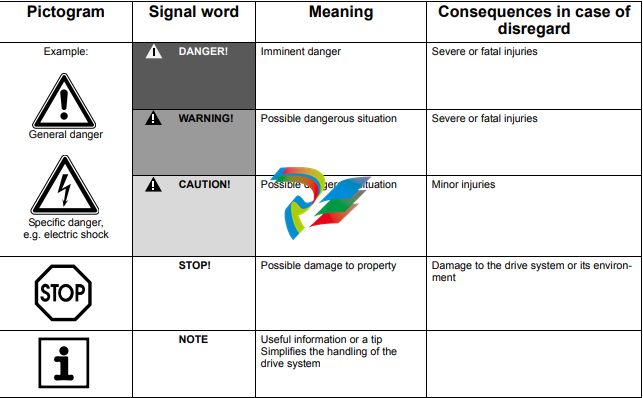 operation may result in severe injuries to persons or damage to machinery.
