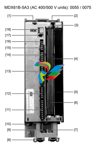 [18] X2: Motor connection U, V, W and PE connection, separable