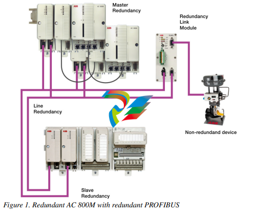 The following figure shows the redundant PROFIBUS connected to the redundant