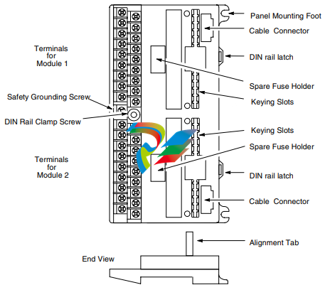 I/O Terminal Blocks provide universal field wiring terminals for two I/O modules, allowing I/O