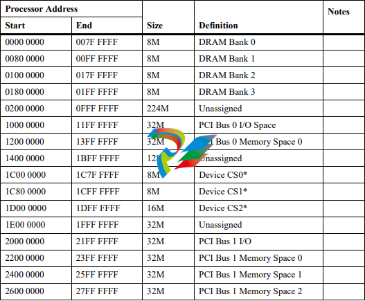 memory map, a default PCI memory map, MOTLoad’s PCI memory map,