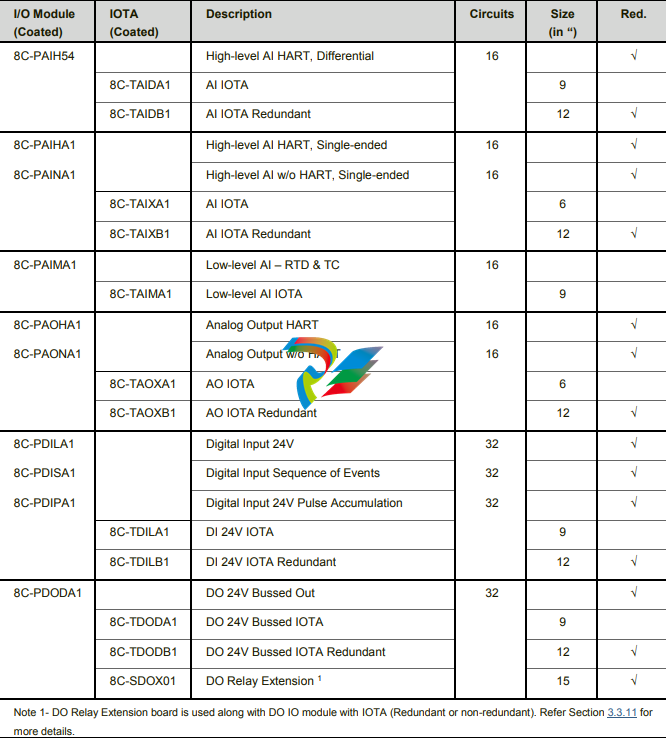 module has 32 points and resides on a 9-inch (228mm) IOTA for non-redundant applications and a 12 inch (304mm)