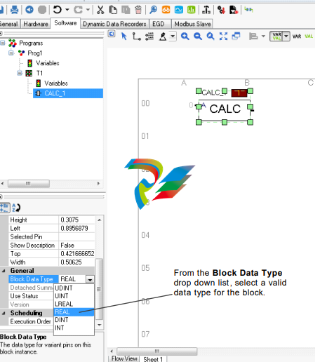 4. From the Block Data Type drop-down box, select a valid data type for the block