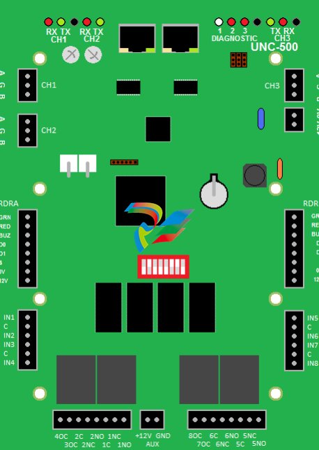 The NCNET (Controller Network) connects the UNC500 controller to other on a highspeed bi-directional RS485 network. CH3 on the master controller connects to CH3 on