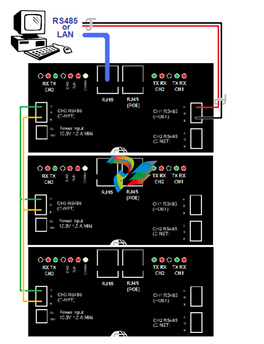 may be connected to each network controller in the C-NET using high speed RS485