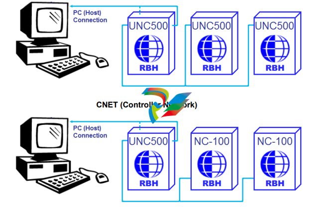 UNC500 controller can only be connected to NC-100 controller if the Arcnet option has