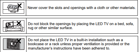• Do not place anything on the LED TV that can hinder heat dissipation.