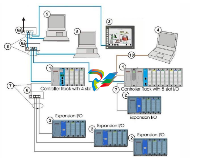 remote input/output rack connections over a private Ethernet-linked network