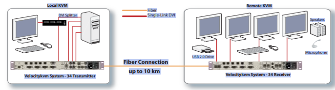 The VelocityKVM System - 34 extension system offers best-in-class fiber optic performance with advanced peripheral and
